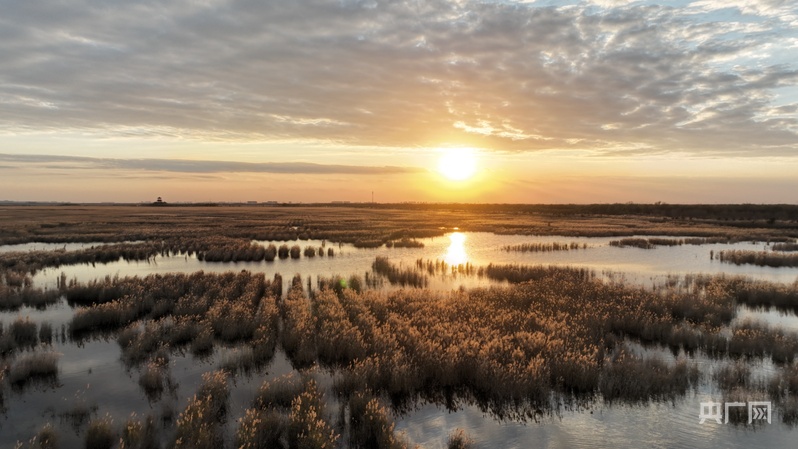 夕阳下的南大港湿地(央广网发 王荣鹏 摄)