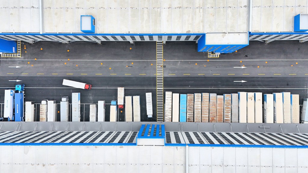10月23日,货车在位于廊坊市广阳经济开发区的中通快递北方总部装卸包裹。