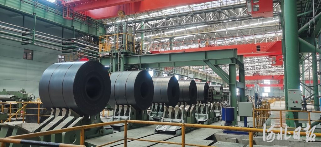 10月20日,河钢集团邯钢新区薄板厂,一批高强工具钢下线,经运输线被运往成品库。杨晓霞 摄