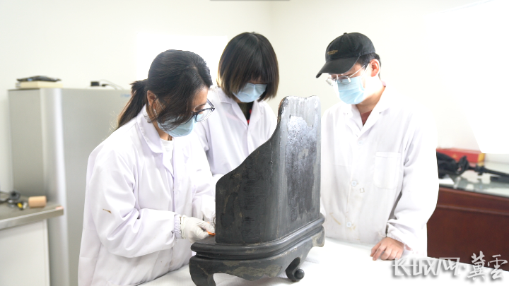 图为工作人员正在修复文物。长城网·冀云客户端记者 陈志洋 摄