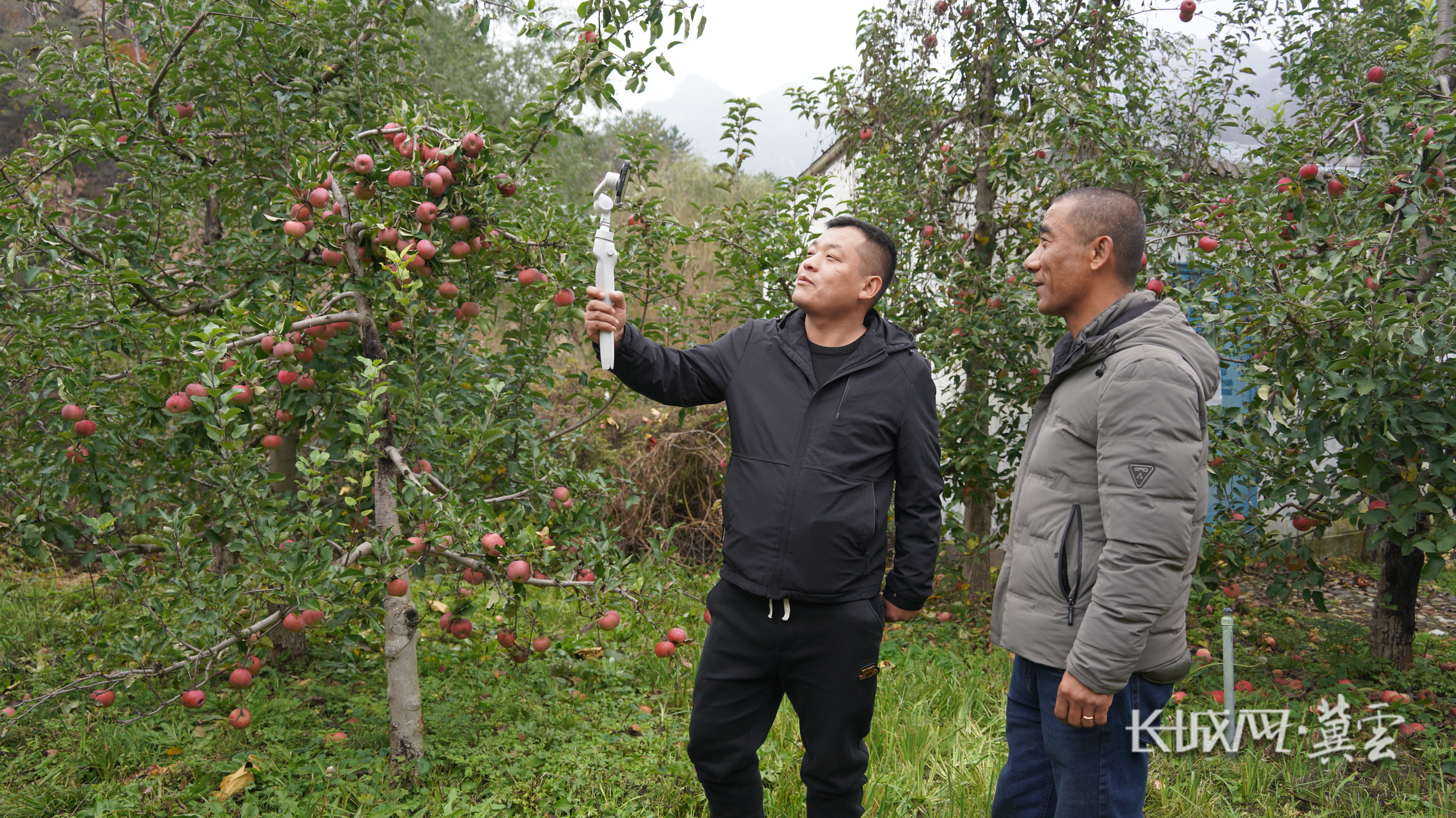 10月,正是苹果成熟的季节,韩永亮的园子里人气旺得很。白龙一手举着手机,一手就从树上摘下颗果子,手背蹭一蹭,就吃上了。