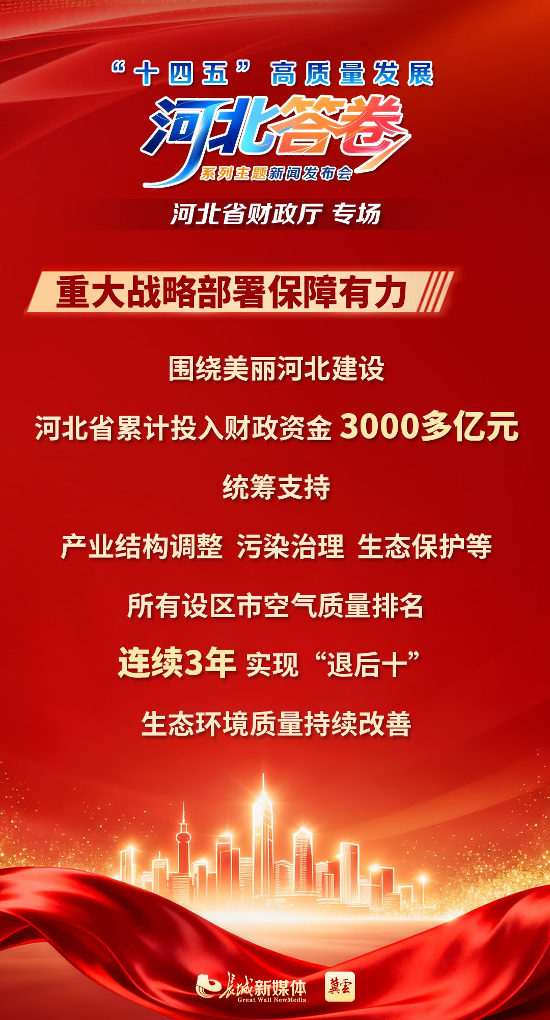 10月31日,河北省政府新闻办举办“十四五”高质量发展河北答卷系列主题新闻发布会河北省财政厅专场,介绍“十四五”时期全省财政事业发展成就。