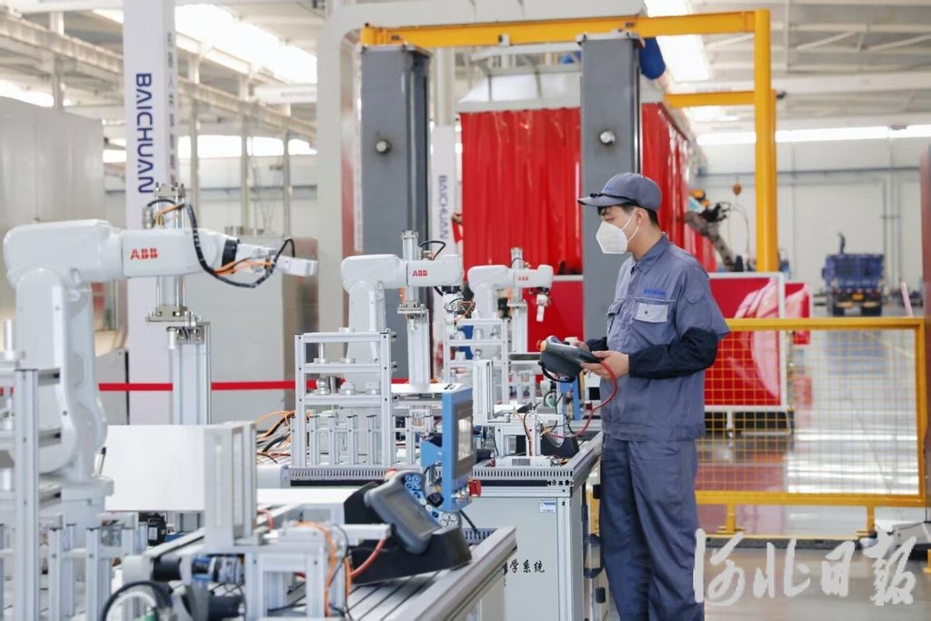 9月19日,唐山百川机器人共享制造工厂,工人正在检查设备。河北日报记者师源摄