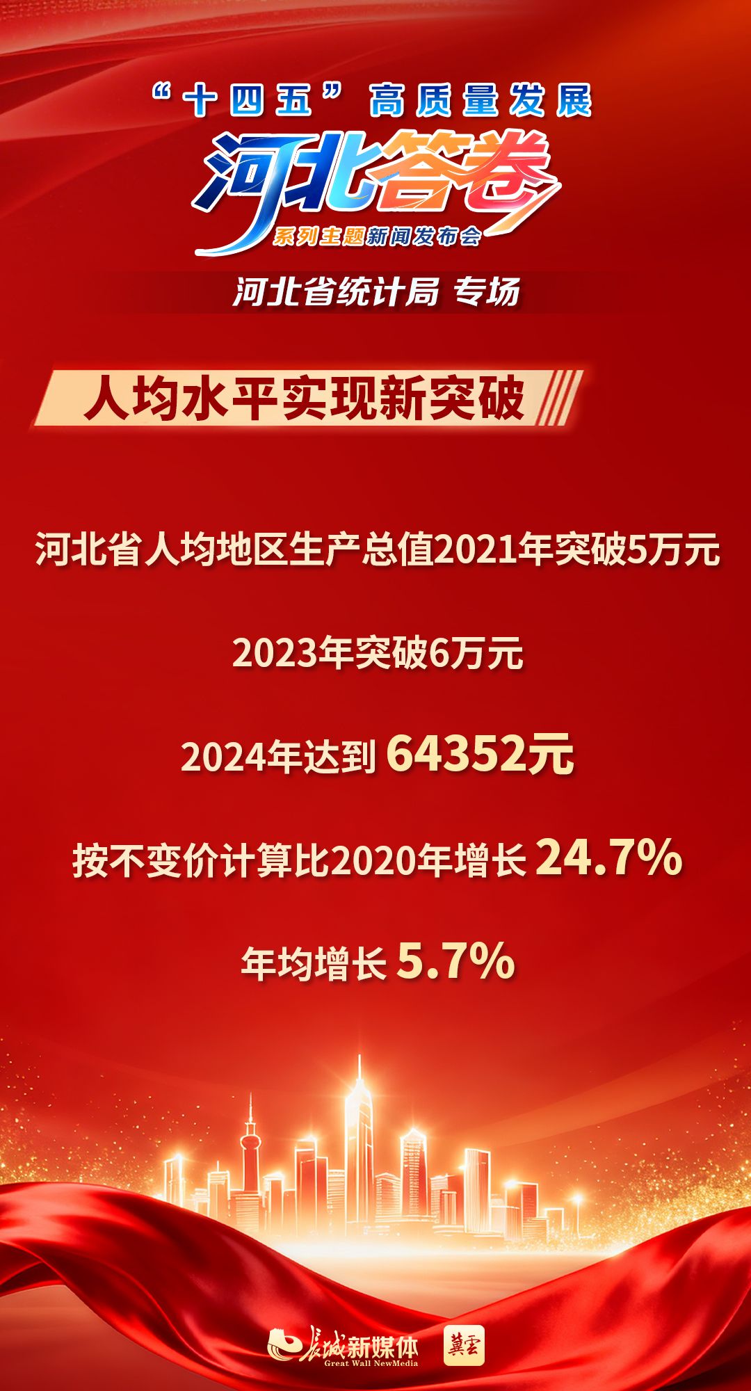 河北人均地区生产总值2024年达到64352元
