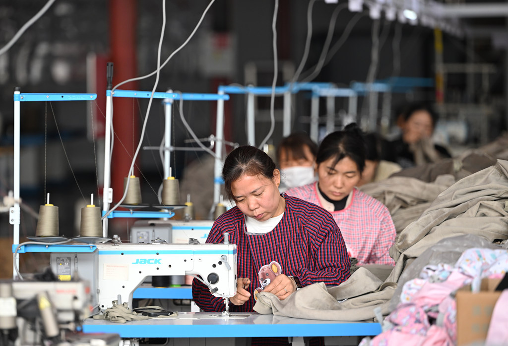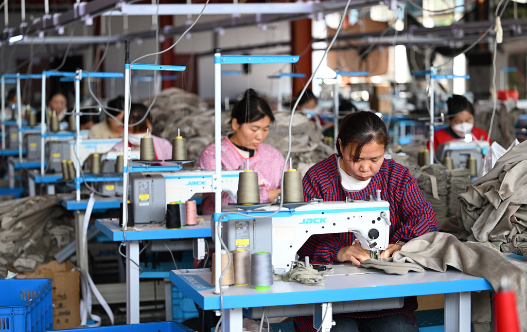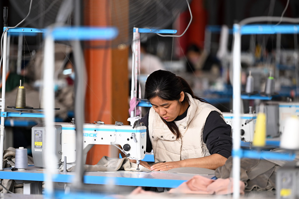 10月27日,在邢台市南和区和阳镇高博美服装有限公司加工车间,工人正忙着赶制订单。