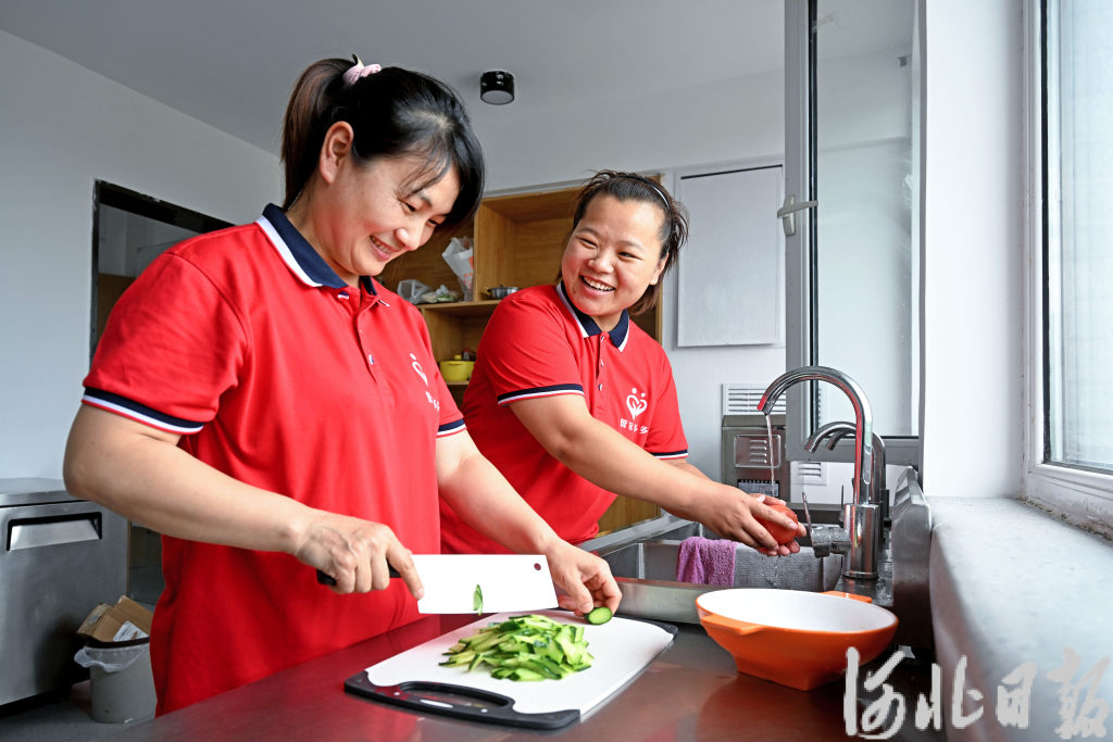 6月19日,北京管家多多家政有限公司,来自邢台的“河北福嫂”王亚芝(右)和同伴一起准备午饭。河北日报记者 张昊摄