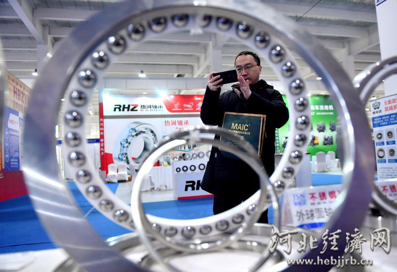 2025年2月5日,客商在2025中国(运河)轴承产业链供需对接交流大会上参观、拍照。新华社发