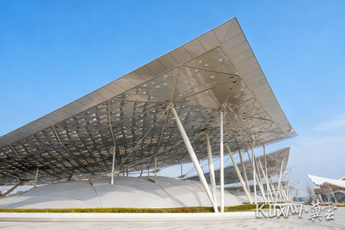 同时,“京帆”屋盖将绿色节能理念贯穿设计建设始终,屋盖一构双层,通过设置穿孔遮阳板、水立方同款泡泡采光顶ETFE气枕,平衡冷热负荷。在“京帆”屋盖下方,是车站的采光井,阳光透过“京帆”被引入地下32米深的候车站台层,营造阳光车站,提高旅客候车体验。