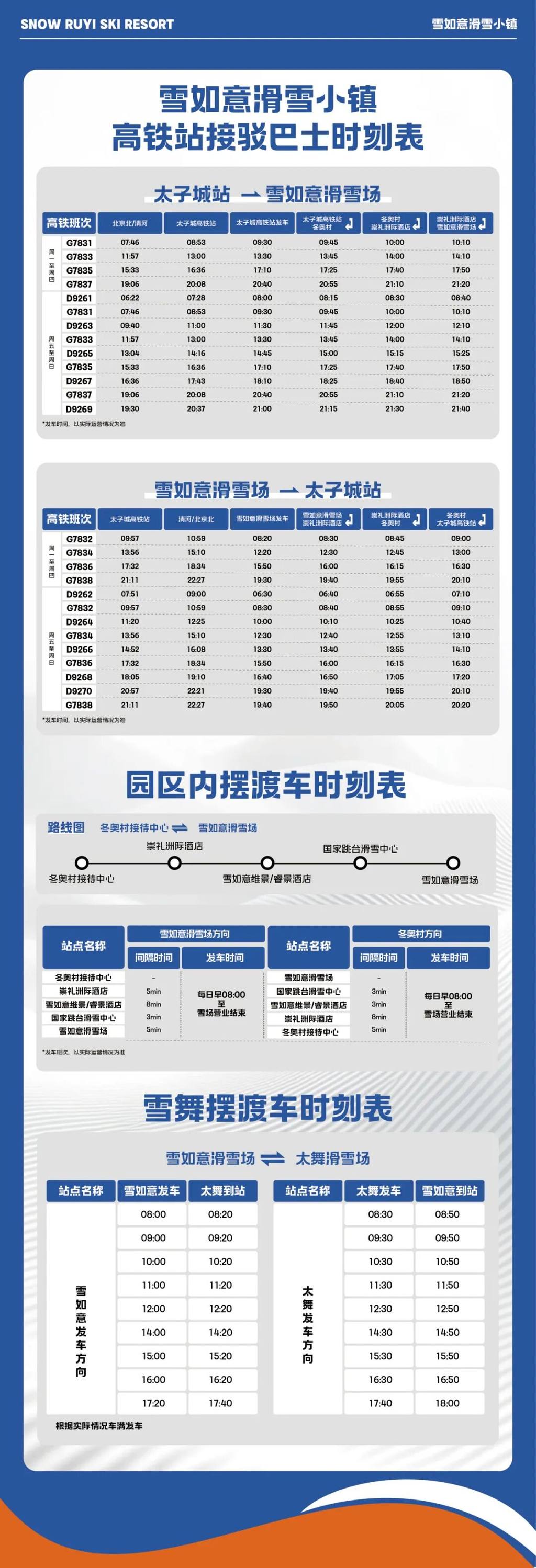 11月18日,雪如意滑雪场正式开滑!雪场营业时间为8:30—16:30,雪如意滑雪场将延续“太阳不落,缆车不停”的理念,随日落时间调整营业时间。接驳车最新时刻表↓↓↓
