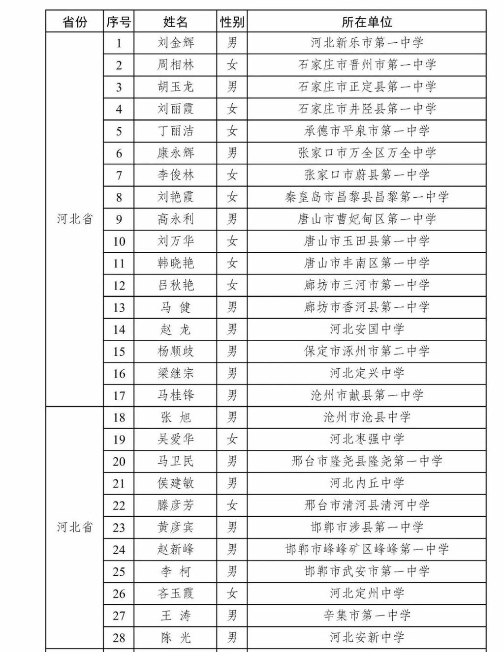 日前,教育部发布通知,经学校自主申报、省级教育行政部门审核公示、等额推荐、会议评议,确定首批全国县域普通高中头雁教师岗位计划入选教师600人。其中,河北28人入选。