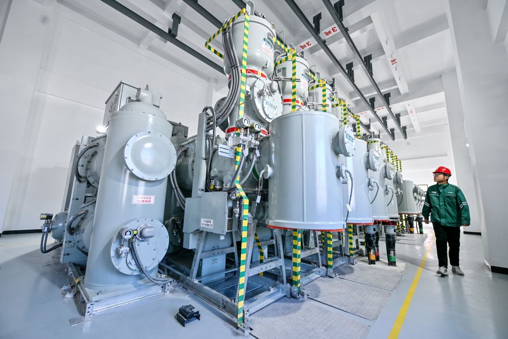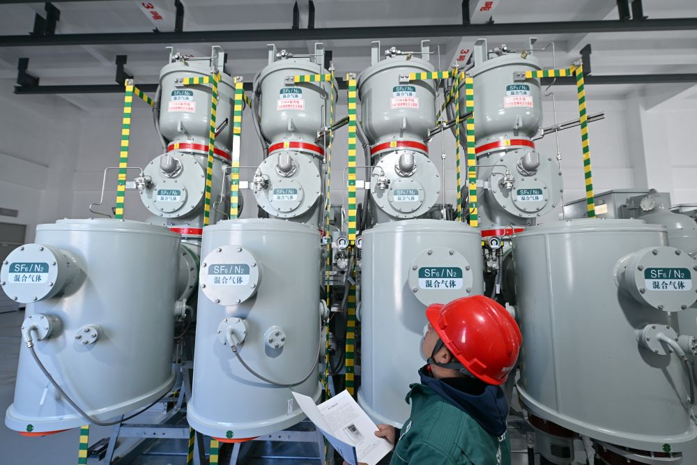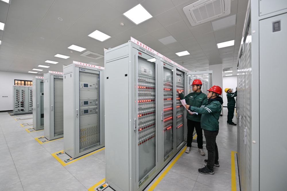 ↑11月19日,工作人员在容西1号变电站内巡检。