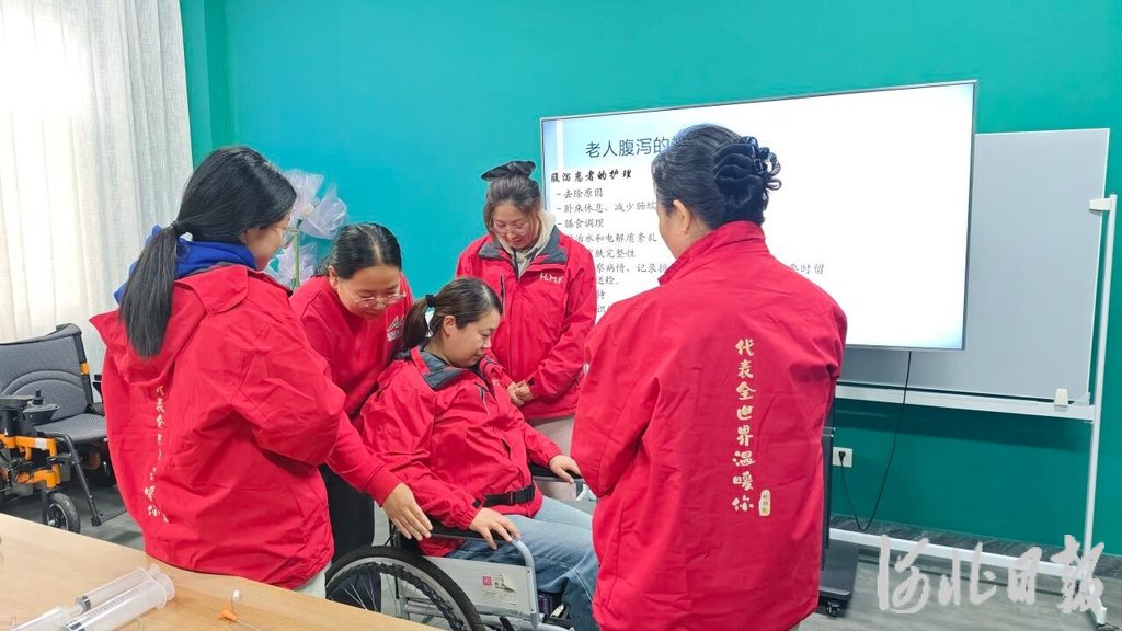 11月6日,石家庄沐瑾家庭服务有限公司工作人员正在进行养老护理培训。李琛摄