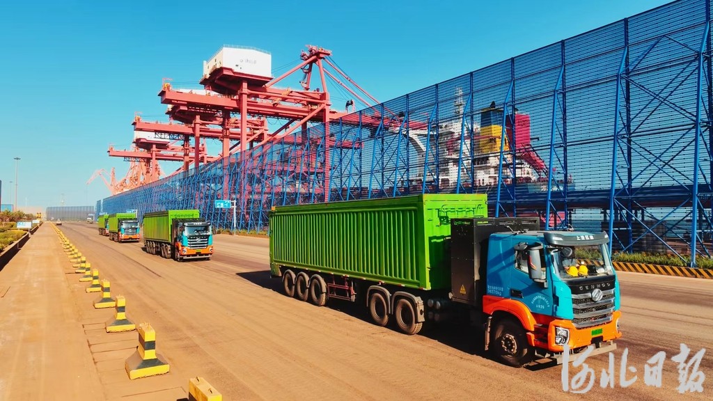 日前,新能源重卡在河北港口集团唐山港集团股份有限公司矿石码头运输。任小霞摄