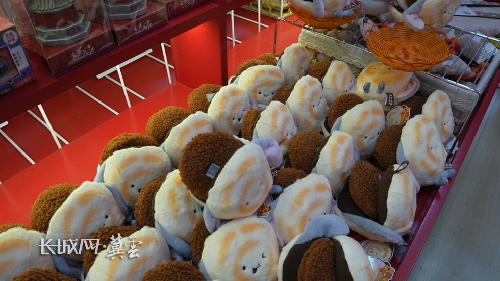 文创店内,驴肉火烧样式的毛绒玩具。长城网·冀云客户端记者 姚杰 摄