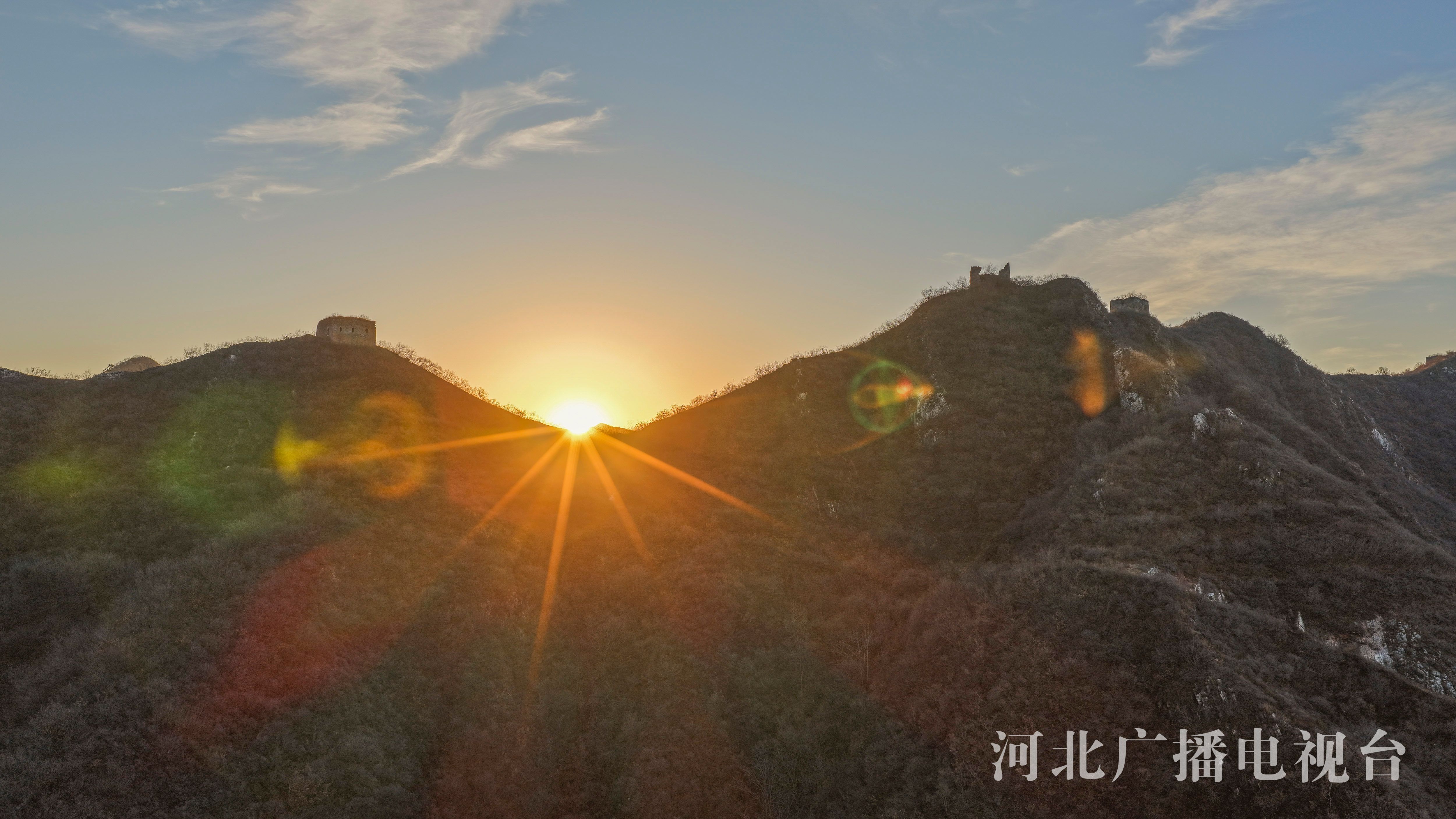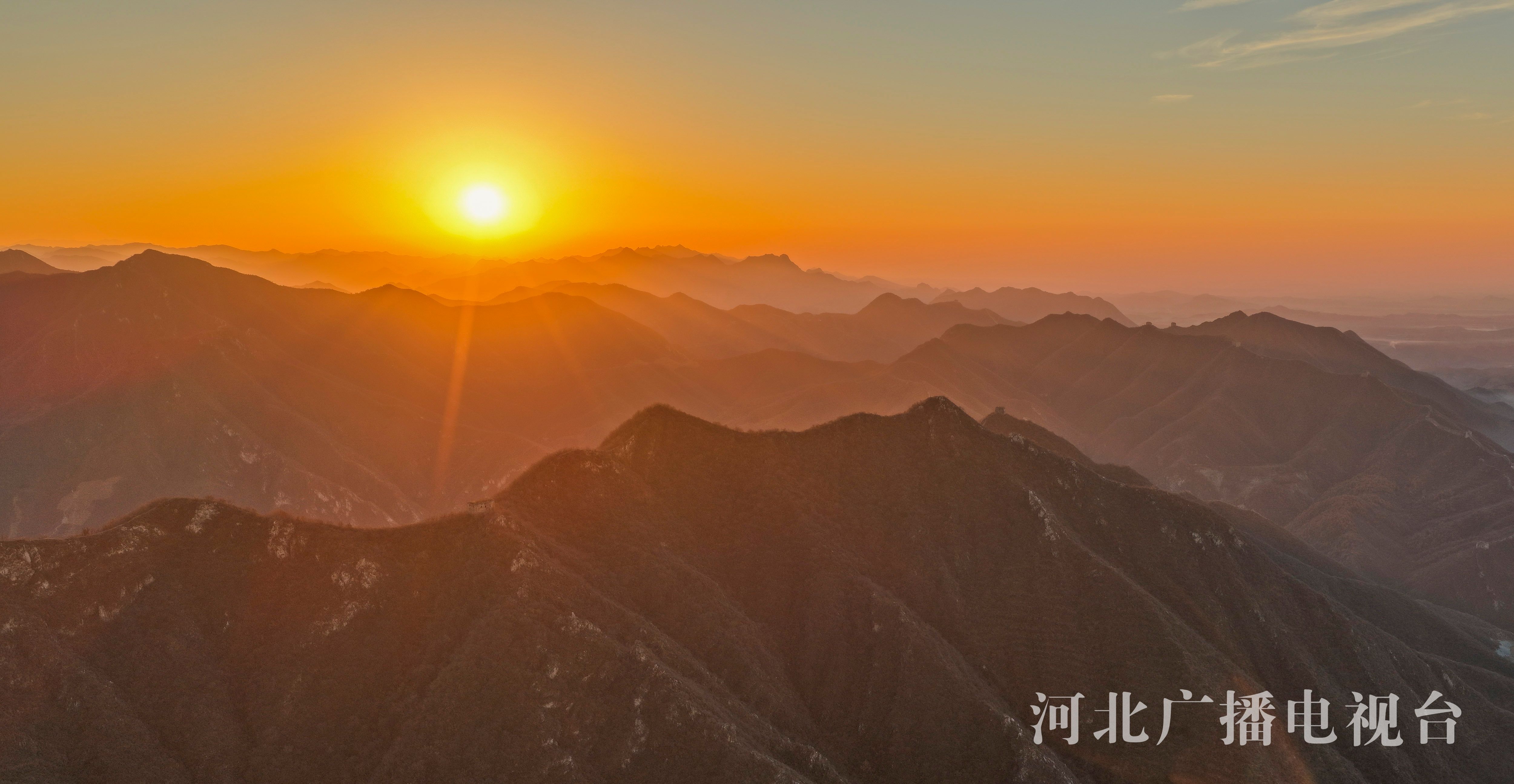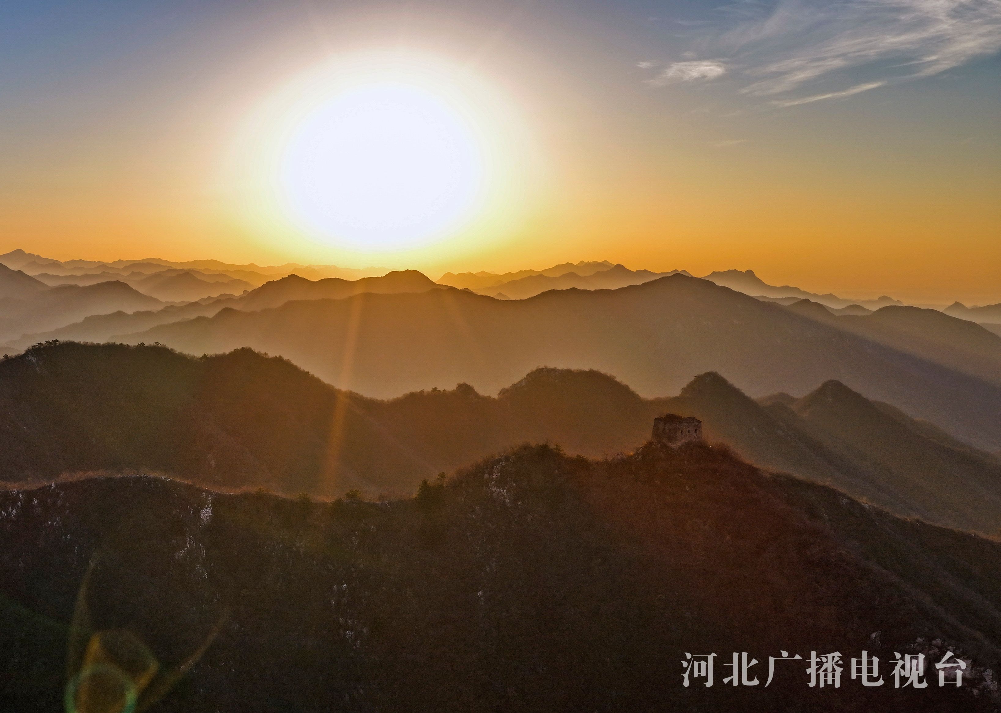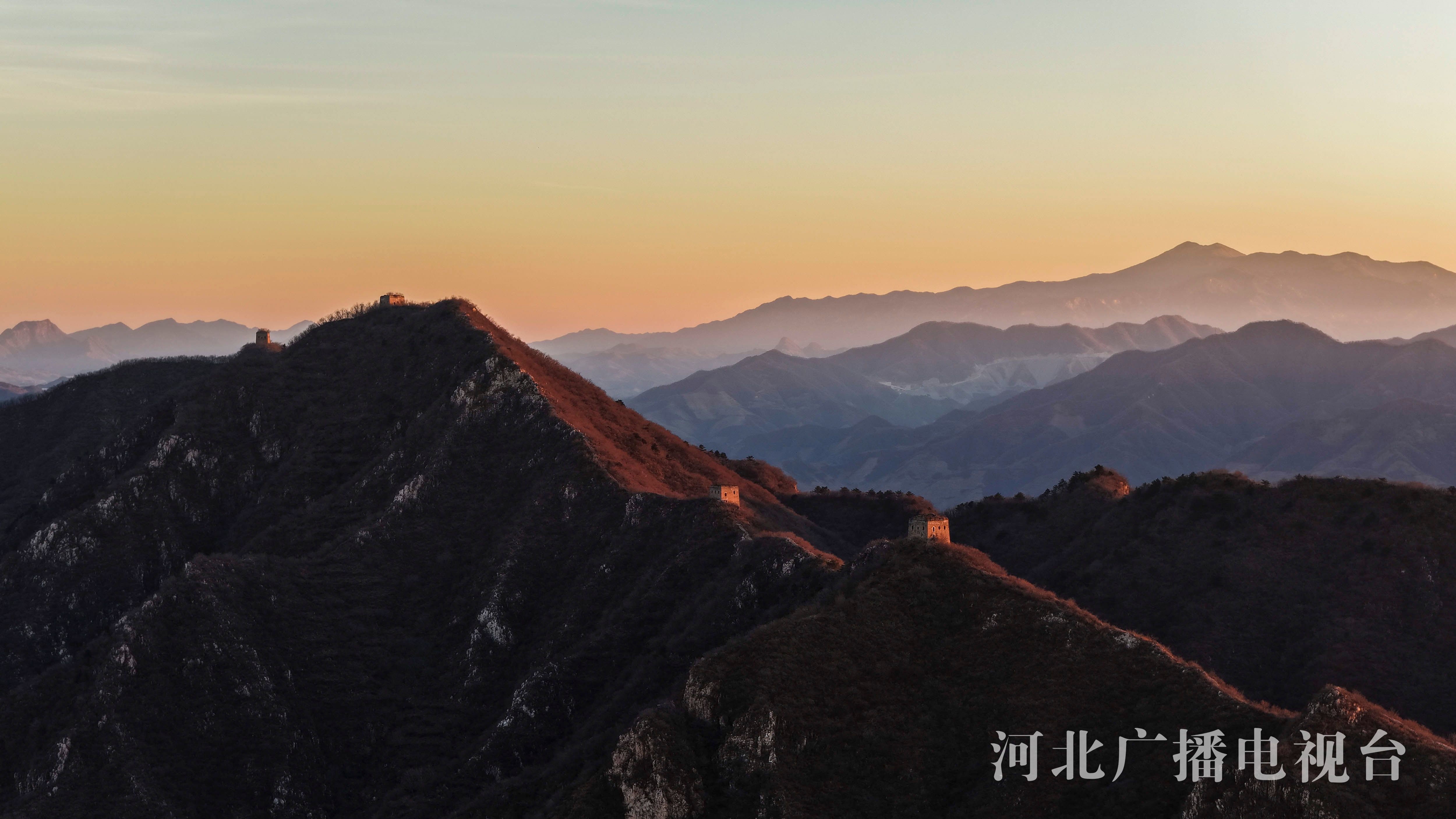 冬日,在唐山市迁西县太平寨镇附近,霞光映衬的古长城与远山交相辉映,壮美如画。(通讯员 刘满仓)