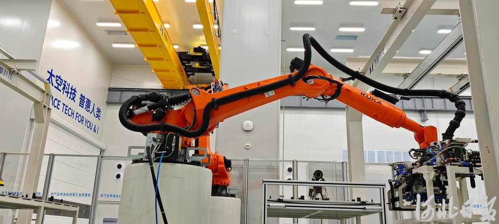 近日,首颗“雄安造”卫星在蓝箭鸿擎(雄安)空间科技有限公司生产下线。图为公司产线。河北日报记者 曹 铮摄