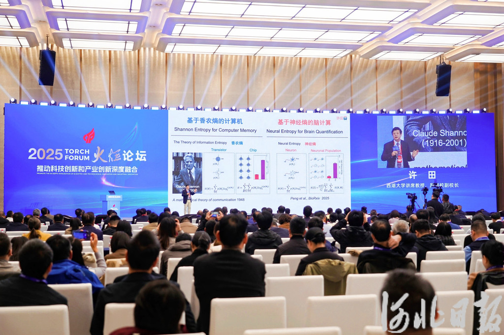 11月6日至7日,首届火炬论坛在雄安新区举办。图为嘉宾在论坛上进行主旨演讲。主办方供图