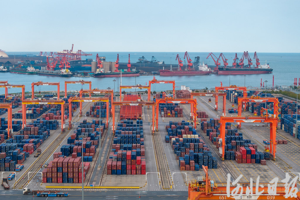 无人机拍摄的唐山港京唐港区集装箱码头堆场。河北日报记者赵杰摄