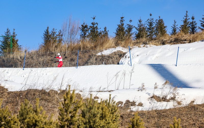 12月19日,河北选手刘一飞在越野滑雪接力比赛中。
