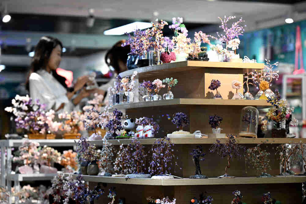 12月22日,顾客在河北省石家庄市一家珠宝产品创意企业展厅挑选创意产品。