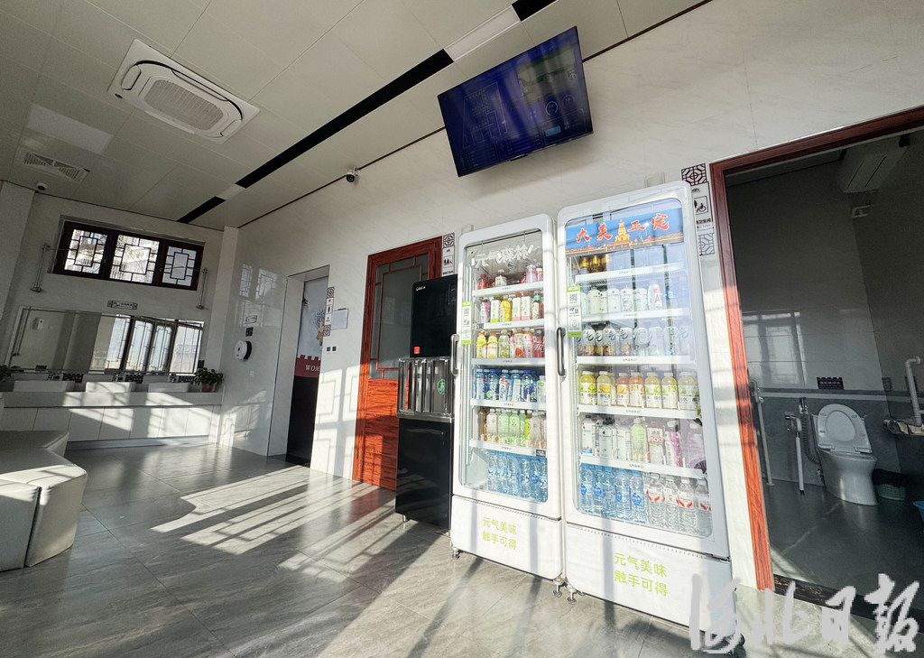 实时监测客流量、空气质量、厕位使用情况等信息,并显示在大厅屏幕上,游客刚进来就一目了然。作为智慧厕所建设试点,正定古城东城门厕所还安装了全热交换中央新风系统、人脸识别厕纸机等,科技赋能让服务更便捷。