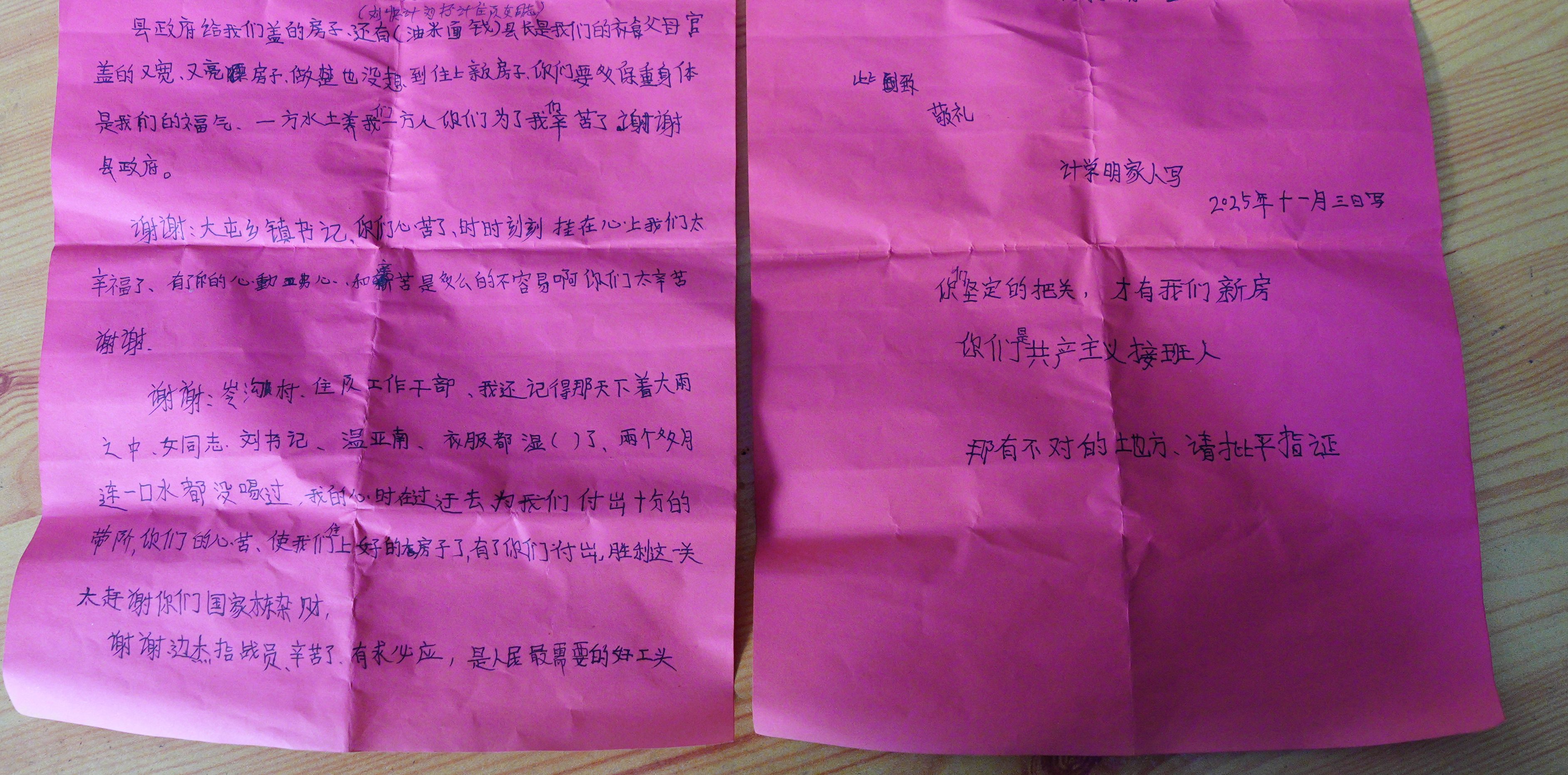 临别前,孙相宜把感谢信仔细折好,放进口袋。她知道,这歪歪扭扭的笔画里,藏着一个家的重建故事,也藏着对她的付出最朴素的肯定。