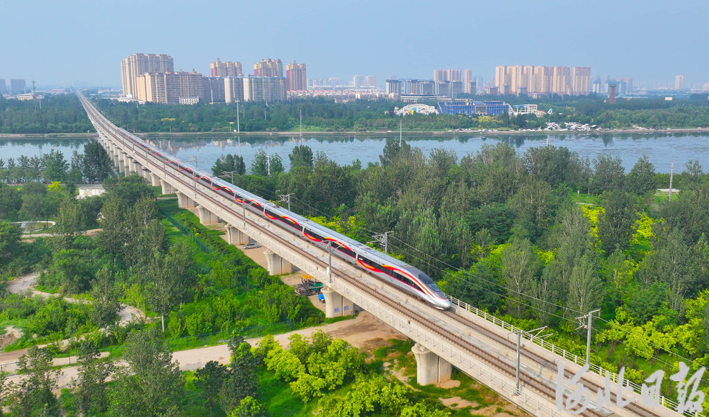 8月3日,一列高铁驶过滹沱河石家庄段。(资料片)河北日报记者史晟全摄