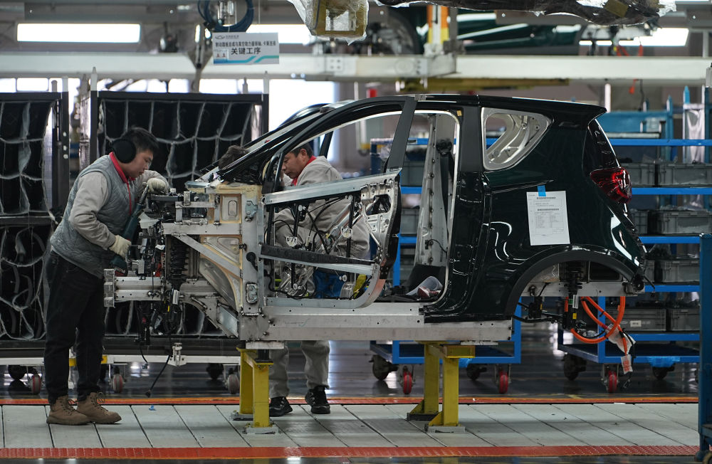 ↑1月8日,在奇瑞新能源汽车股份有限公司石家庄分公司总装车间,工人装配新能源汽车。新华社发(梁子栋 摄)