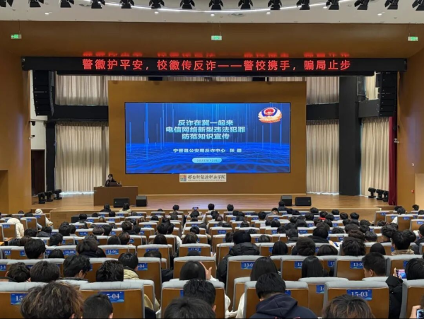 为切实增强全体学生的反诈防诈意识,筑牢校园安全防线,近日,邢台市宁晋县公安局反诈中心联合邢台新能源职业学院开展“警校携手 骗局止步”主题反诈讲座。