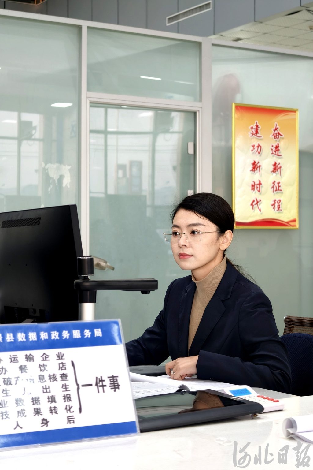 1月15日,景县政务服务大厅,河北宝源工程橡塑有限公司办事员刘艳艳刚办完业务,省人大代表、景县数据和政务服务局科员王馨艺就拿着笔和本子跟了上去:“今天办理特种设备使用登记业务顺畅吗?您感觉还有哪些环节需要优化?”