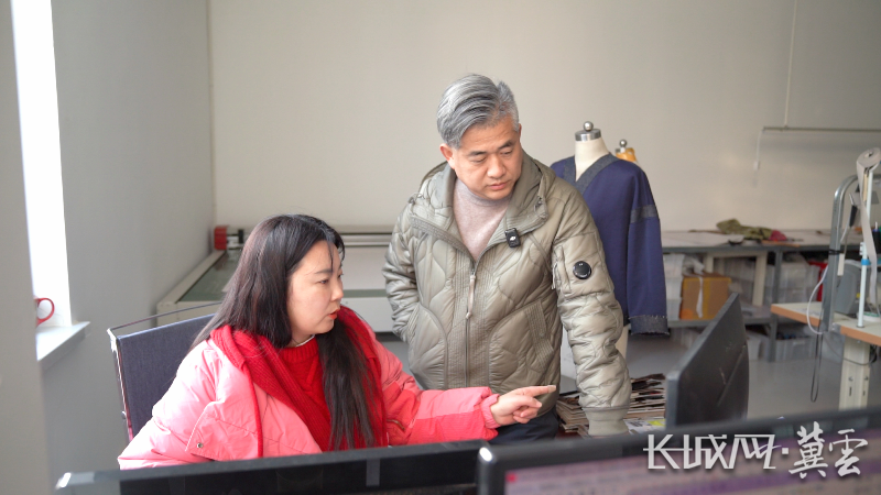 郭松与团队设计师研究服装款式。长城网·冀云客户端记者 富心迪 摄