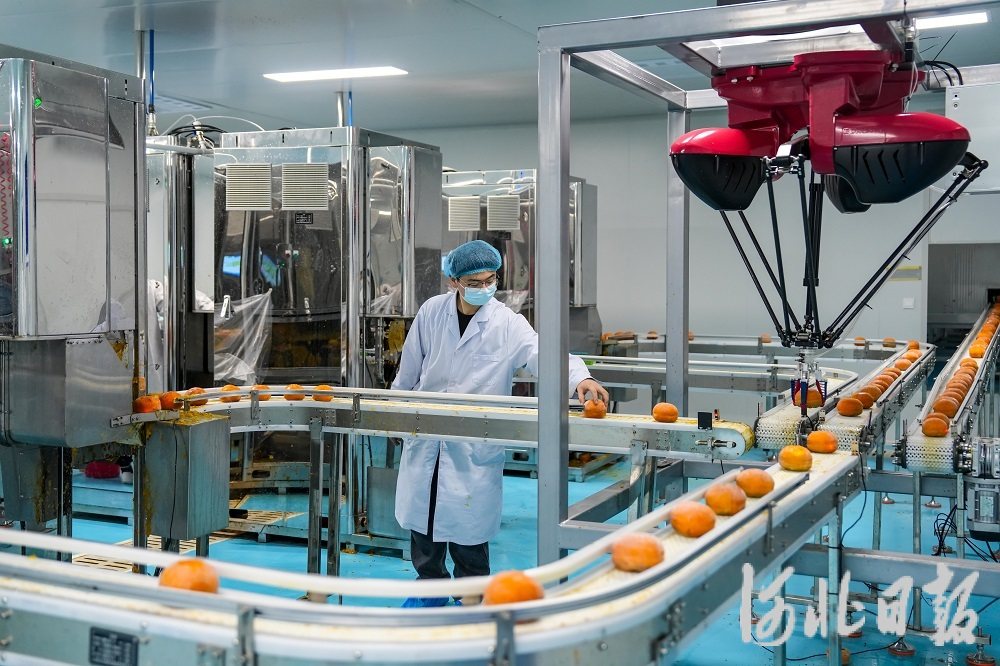 1月13日,保定沃隆农业发展有限公司工人在查看冰柿智能生产线运行情况。在易县中独乐村,保定沃隆农业发展有限公司的首条冰柿智能生产线近日正式投用。这条生产线实现了冰柿清洗、削皮、分拣、包装全流程自动化,日产能达2万枚。保定是全国柿子七大主产区之一,2024年,保定冰柿以其独特口感引爆社交网络。保定沃隆农业发展有限公司2025年冰柿订单量超1500万枚,目前生产已排至2026年6月。河北日报记者许佳奇摄