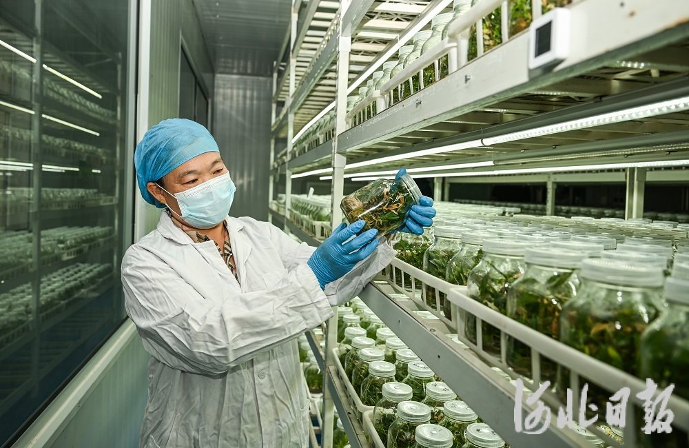 1月9日,张家口市加禾农业科技有限公司工作人员查看铁皮石斛幼苗长势。近年来,怀来县大力发展高效设施农业,种植中药材、花卉和有机蔬菜等高附加值的特色农产品,采用“专业合作社+基地+农户”模式,带动农民增收,助力乡村振兴。河北日报记者耿辉摄