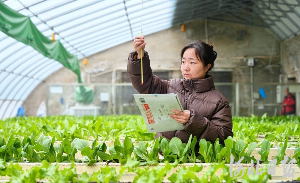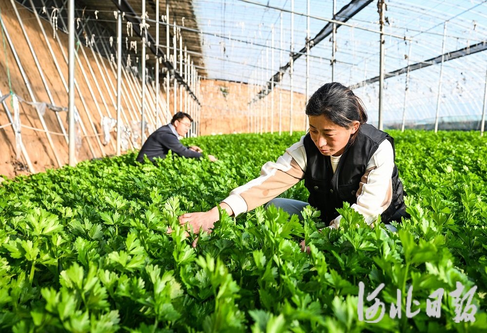 1月11日,怀安县现代农业园区工作人员在查看蔬菜长势。近年来,怀安县瞄准京津市场,推动以特色优质错季蔬菜为主的设施农业提质增效,助力农民增收。河北日报记者耿辉摄