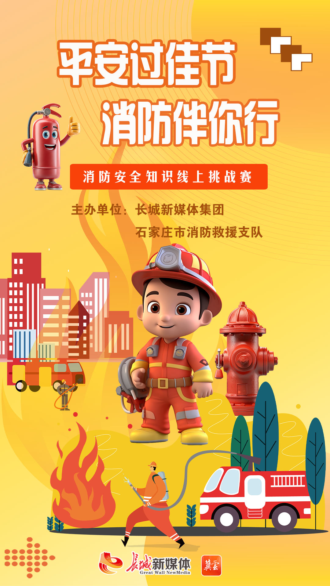 春节将至,为普及消防安全知识,增强公众防火意识,共同营造安全、祥和的节日氛围,长城新媒体集团与石家庄市消防救援支队共同推出“平安过佳节,消防伴你行”消防安全知识线上答题活动。