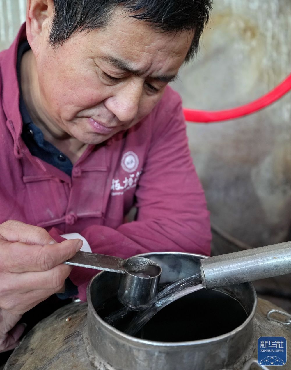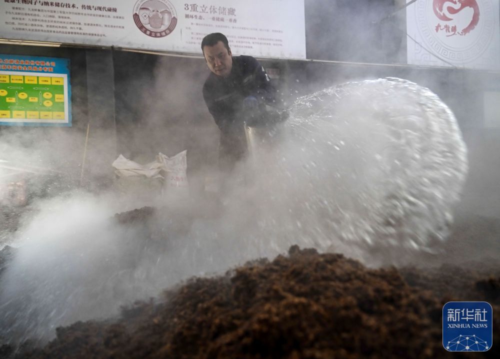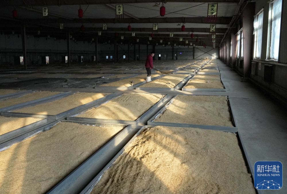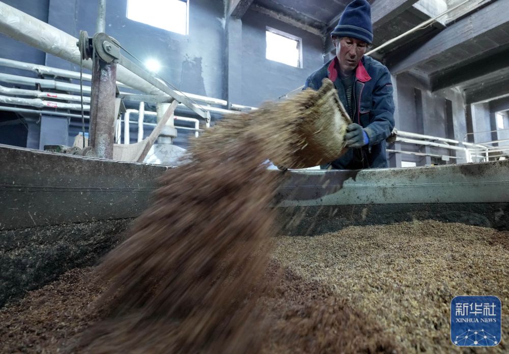 1月27日,工人在河北省丰宁满族自治县承德九龙醉酒业股份有限公司酿造车间工作。新华社发(胡杨摄)