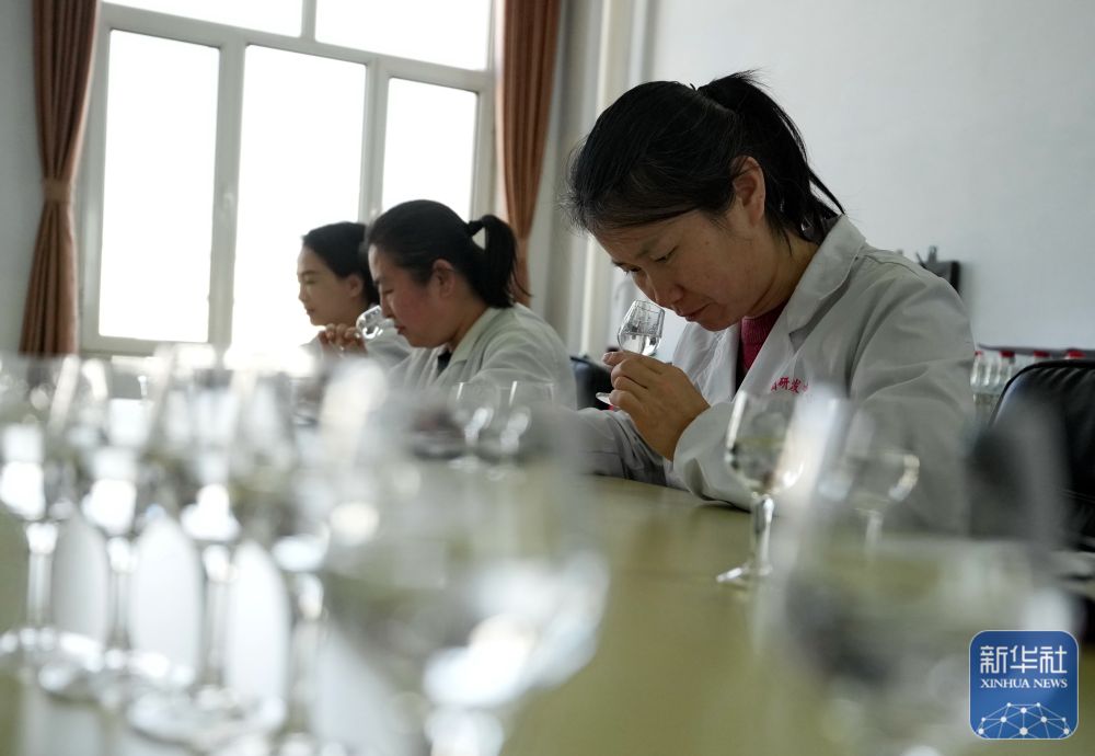 1月28日,河北省平泉市承德避暑山庄企业集团股份有限公司的调酒师在研发中心品酒。新华社记者 杨世尧 摄