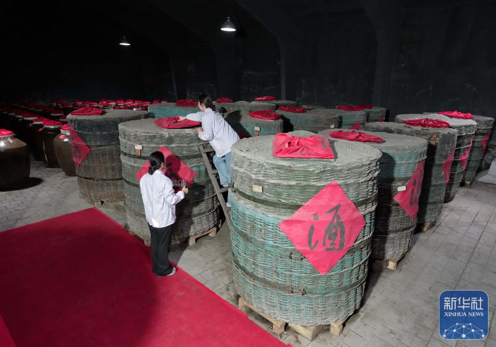 1月27日,工人在河北省丰宁满族自治县承德九龙醉酒业股份有限公司酒窖工作。新华社记者 杨世尧 摄