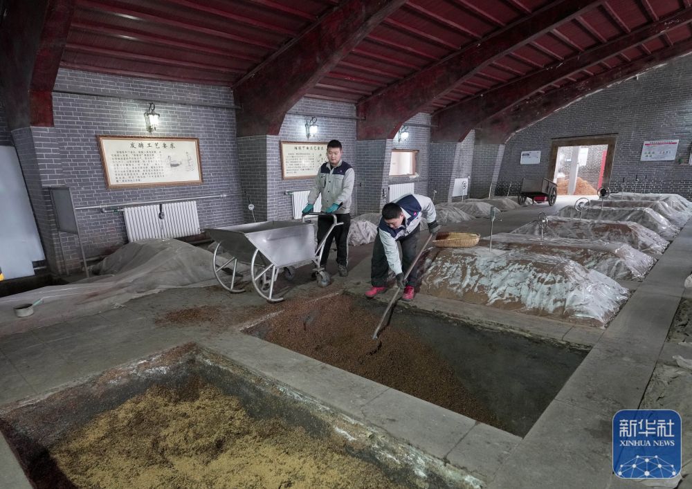 1月28日,河北省承德县承德乾隆醉酒业有限责任公司的工人在发酵车间工作。新华社记者 杨世尧 摄
