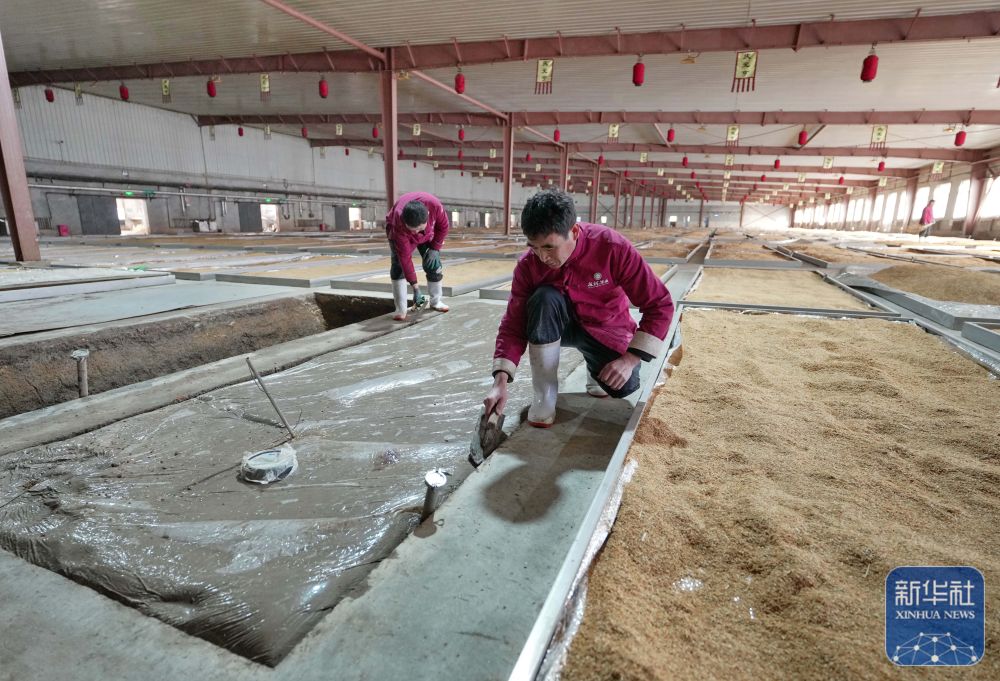 1月28日,工人在河北省平泉市承德避暑山庄企业集团股份有限公司的“涌泰泉古窖池”车间工作。新华社记者 杨世尧 摄