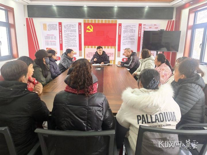 关虎跃为社区群众传达省两会精神。受访者 供图