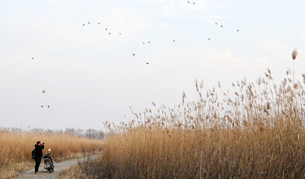 “越是天气寒冷,巡护就越不能松懈。冰冻后鸟儿觅食难,受伤、滞留的情况也容易发生。”“鸟叔”韩战桥一边用望远镜观察芦苇深处,一边解释着初春巡护的意义。