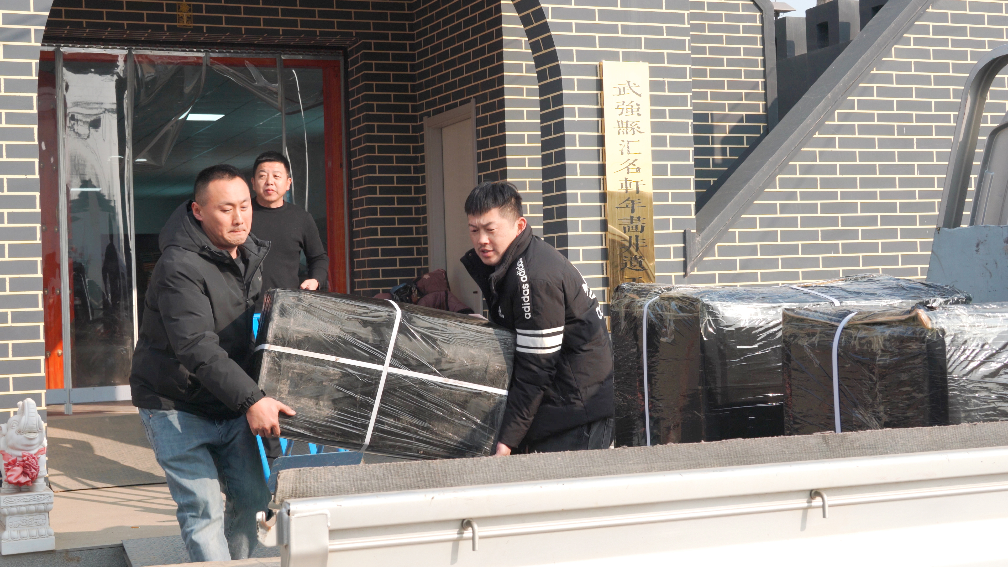汇名轩年画非遗工坊的工人将打包好的年画装车。冀云·长城网记者 李雄飞 熊庆