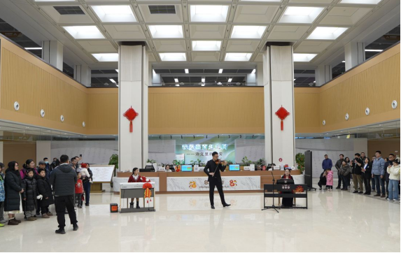 馆内各类新春特色活动更是精彩纷呈,现场人气持续攀升,处处洋溢着欢乐的节日氛围。“声动书海”音乐快闪已于假期第一天惊喜上演,乐声在书香中流淌,逾400名读者自发轻声合唱,温暖的旋律让图书馆充满团圆气息;“承韵非遗”体验区前人头攒动,非遗大师现场传艺,剪纸、面塑等沉浸式手作体验每日换新,家长与孩子携手创作,在指尖感受传统技艺的魅力;“穿越时空的年味”集卡活动深受市民喜爱,大家循着线索解谜打卡,在互动中探寻古人年俗。