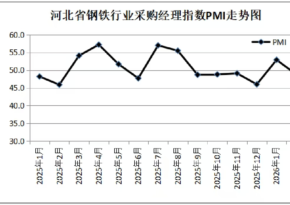 3月1日,河北省冶金行业协会发布2月份全省钢铁行业PMI为48.8%,环比下降4.1个百分点,回落至荣枯线以下。