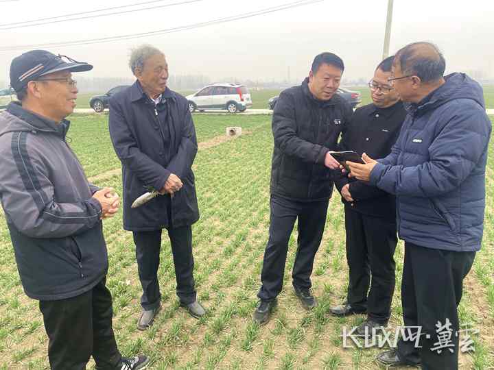 全国人大代表、河北省小麦专家指导组组长郭进考(左二)与保定市农业农村局相关工作人员一同察看当地麦苗长势。长城网·冀云客户端记者 贾宏博 摄