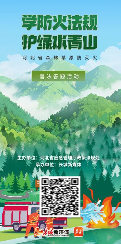 为进一步普及森林草原防灭火法律法规知识,提升全民安全防范意识和法治素养,由河北省应急管理厅政策法规处主办、长城新媒体承办的森林草原防灭火普法线上答题活动即将开启,诚邀社会各界公众积极参与,在答题闯关中学法懂法,共同筑牢生态安全防线!