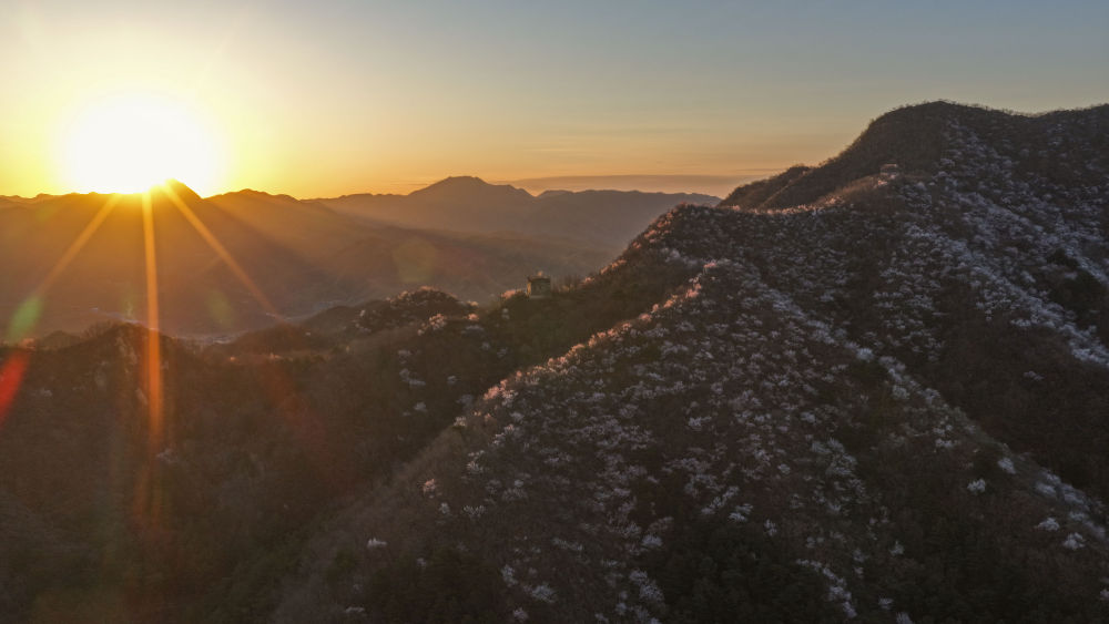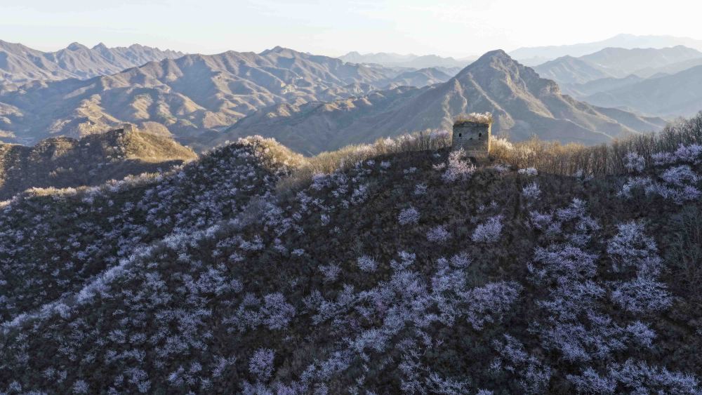 近日,随着气温回暖,河北省唐山市迁西县的长城周边山花烂漫,美如画卷。