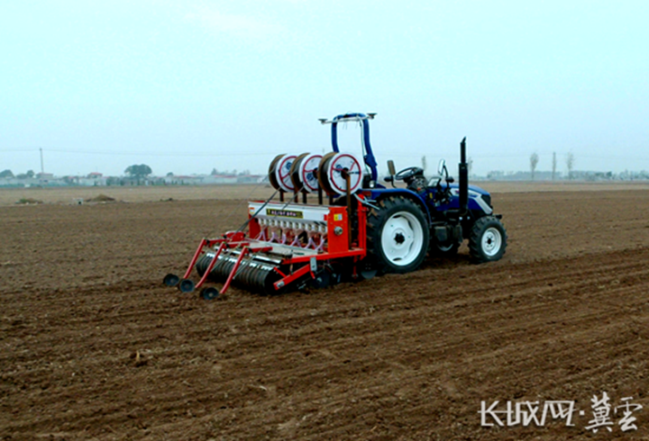 采用北斗导航系统的小麦播种铺带机正在播种。河北省农林科学院 供图