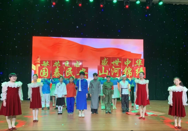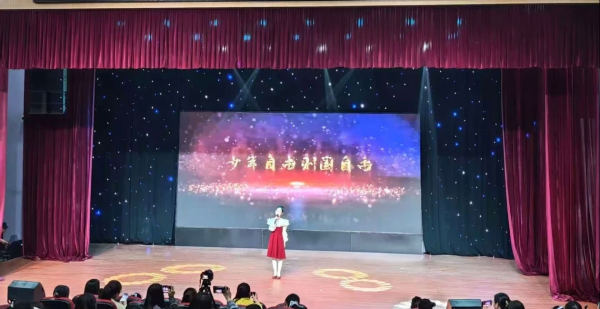 在少年担当展示环节,学生们以单人朗诵形式演绎《少年中国说》,“少年强则国强,少年进步则国进步”的铿锵誓言响彻全场,生动诠释了新时代青少年的责任与使命。随后,集体朗诵节目《盛世中华》《山河锦绣》将现场氛围推向高潮,同学们以整齐划一的动作、铿锵有力的声音,抒发对祖国的热爱之情,以及守护国家安全、助力盛世发展的坚定决心。